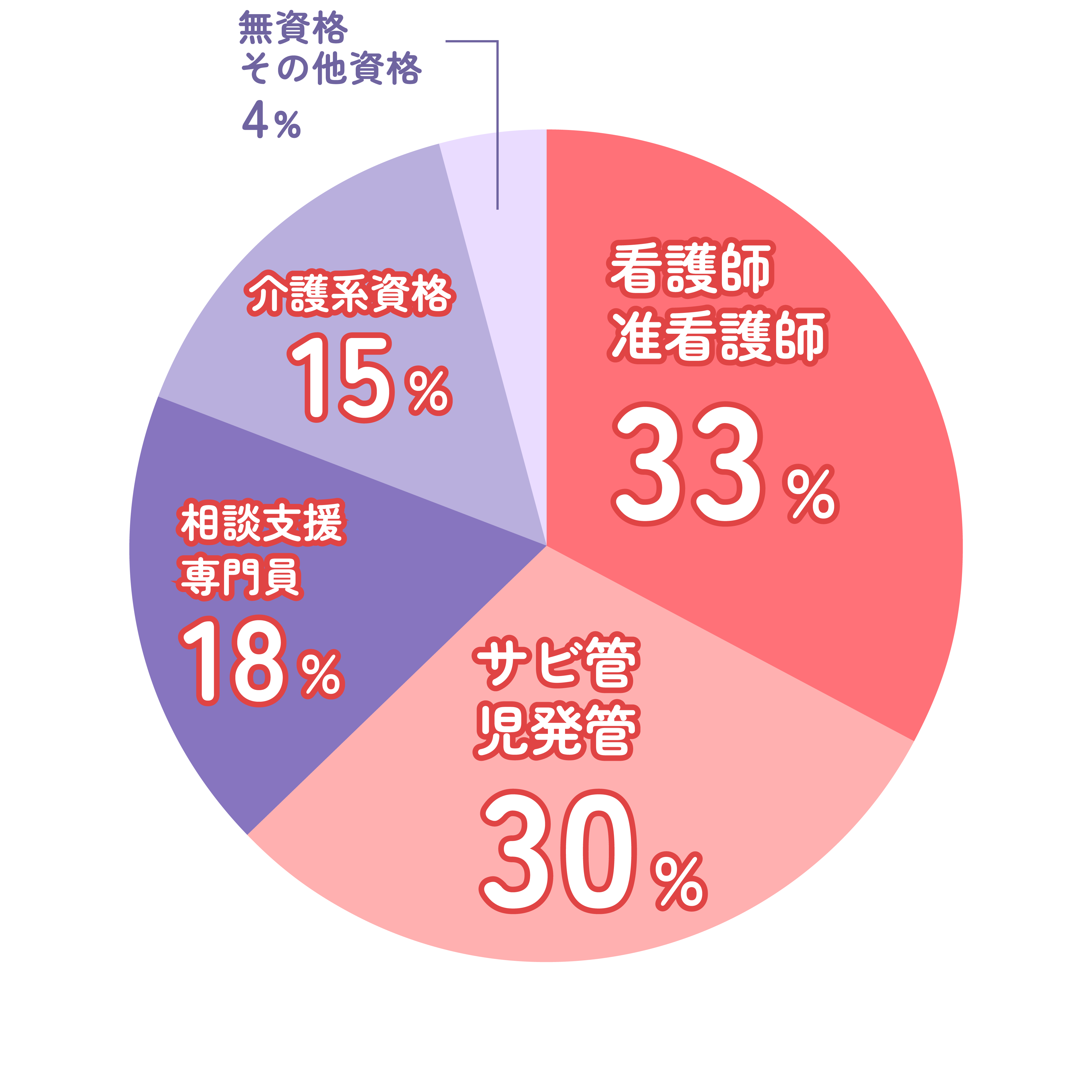 障がい者福祉に必要なサビ管・児発管・看護師など様々な方にご登録いただいております。